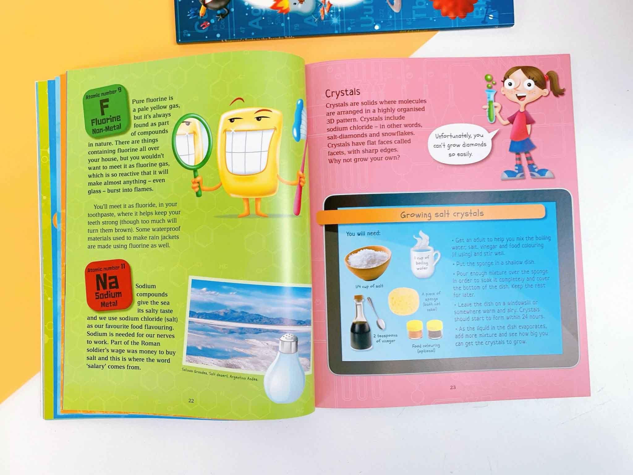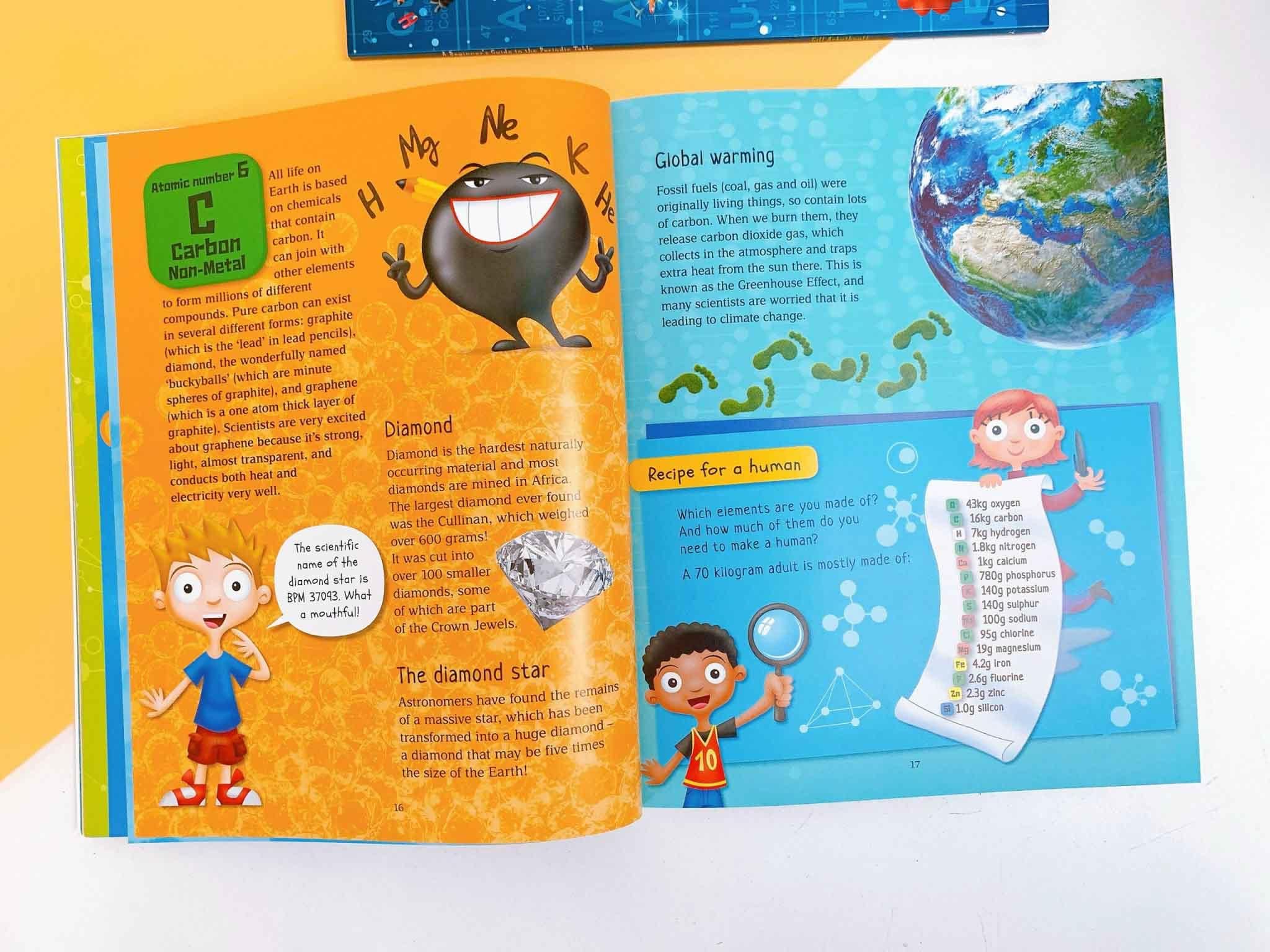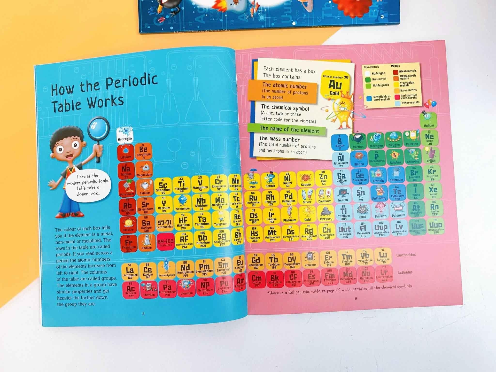 A Beginner's Guide to the Periodic Table sẽ đưa các em nhỏ đi hết bất ngờ này đến bất ngờ khác vô cùng thích thú khi được tiếp cận với thế giới kỳ thú của 118 nguyên tố hóa học – thành phần quan trọng nhất hình thành nên mọi vật chất trong Vũ trụ. Cuốn sách mang đến các thông tin hữu ích về bảng tuần hoàn, từ việc giải thích nó là gì, cách hoạt động như thế nào, những nguyên tố hóa học nào mang tính quyết định đối với cuộc sống, các nguyên tố nặng mùi hay phát nổ cho đến các nguyên tố phóng xạ độc hại và nhiều hơn nữa.
