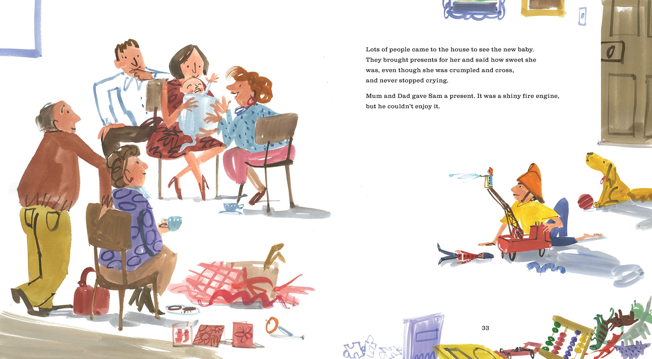 Sam và Kate biết điều gì làm họ vui vẻ: ôm ấp mẹ, đọc truyện với bố, bơi lội, chạy và nhảy…rất rất nhiều thứ! Nhưng không phải lúc nào họ cũng cảm thấy vui vẻ, và tất nhiên trong cuốn sách này bạn đọc nhí sẽ thấy họ gắt gỏng, xấu hổ, ngại ngùng, lo lắng, sợ hãi, buồn bã và cả ghen tỵ.