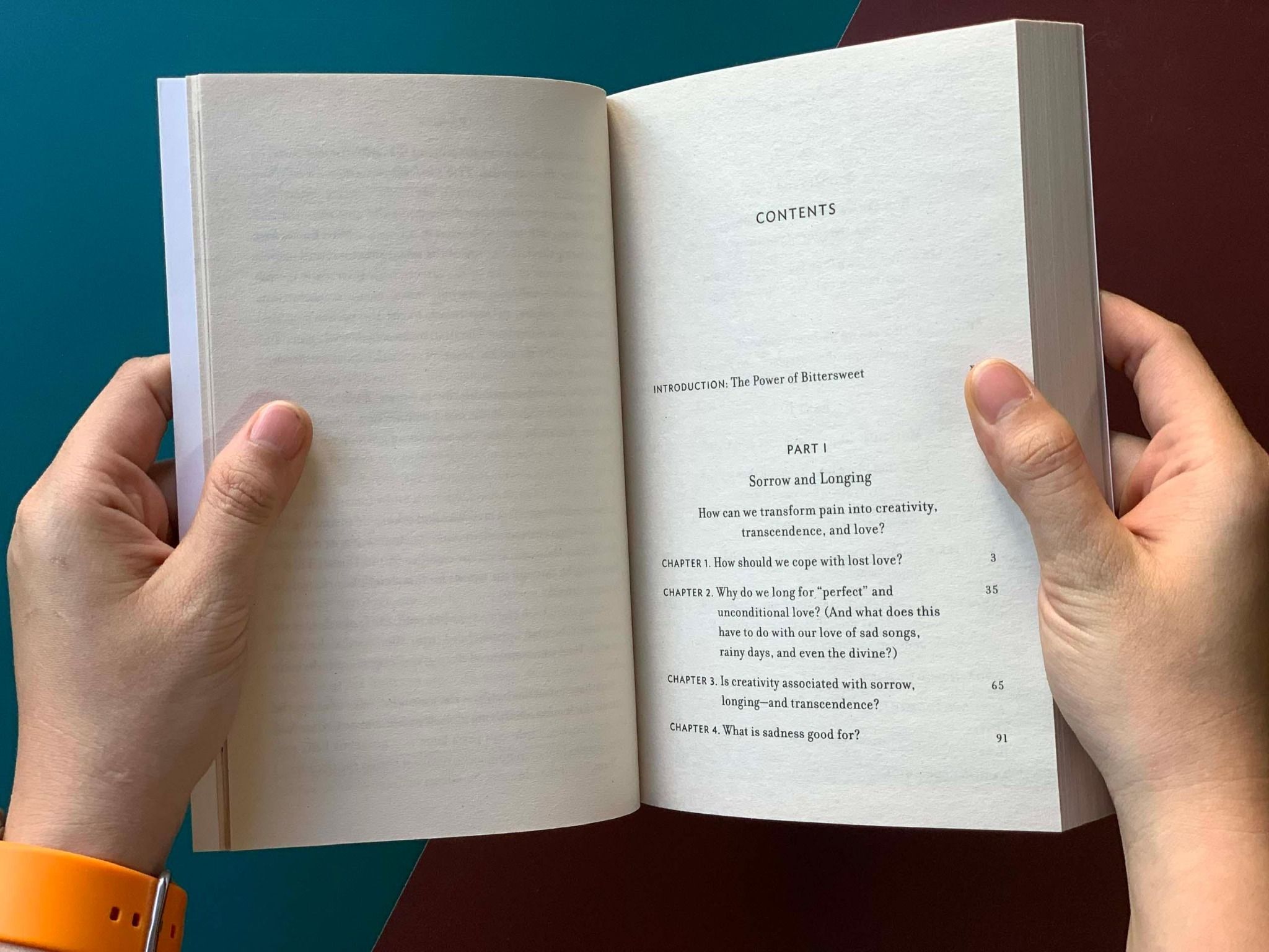 Bittersweet mở đầu bằng việc khám phá mục đích của nỗi buồn. Tại sao con người lại khao khát điều đã mất, nuối tiếc quá khứ, và làm sao những cảm xúc ấy, khi được đón nhận đúng cách, có thể trở thành nguồn sáng tạo lớn. Ở phần hai, Susan Cain cảnh báo về "chủ nghĩa lạc quan cực đoan" đặc biệt phổ biến ở phương Tây, khiến ta mất khả năng xử lý cảm xúc tiêu cực một cách lành mạnh. Cuối cùng, cuốn sách đi vào chủ đề của sự mất mát và cái chết, cho thấy ý thức về sự mong manh của cuộc sống có thể khiến ta sống tỉnh thức và có chủ đích hơn. Với những câu chữ nhẹ nhàng nhưng thấm sâu, Cain khuyến khích người đọc đón nhận nỗi buồn như một phần tất yếu và đẹp đẽ của đời sống cảm xúc.