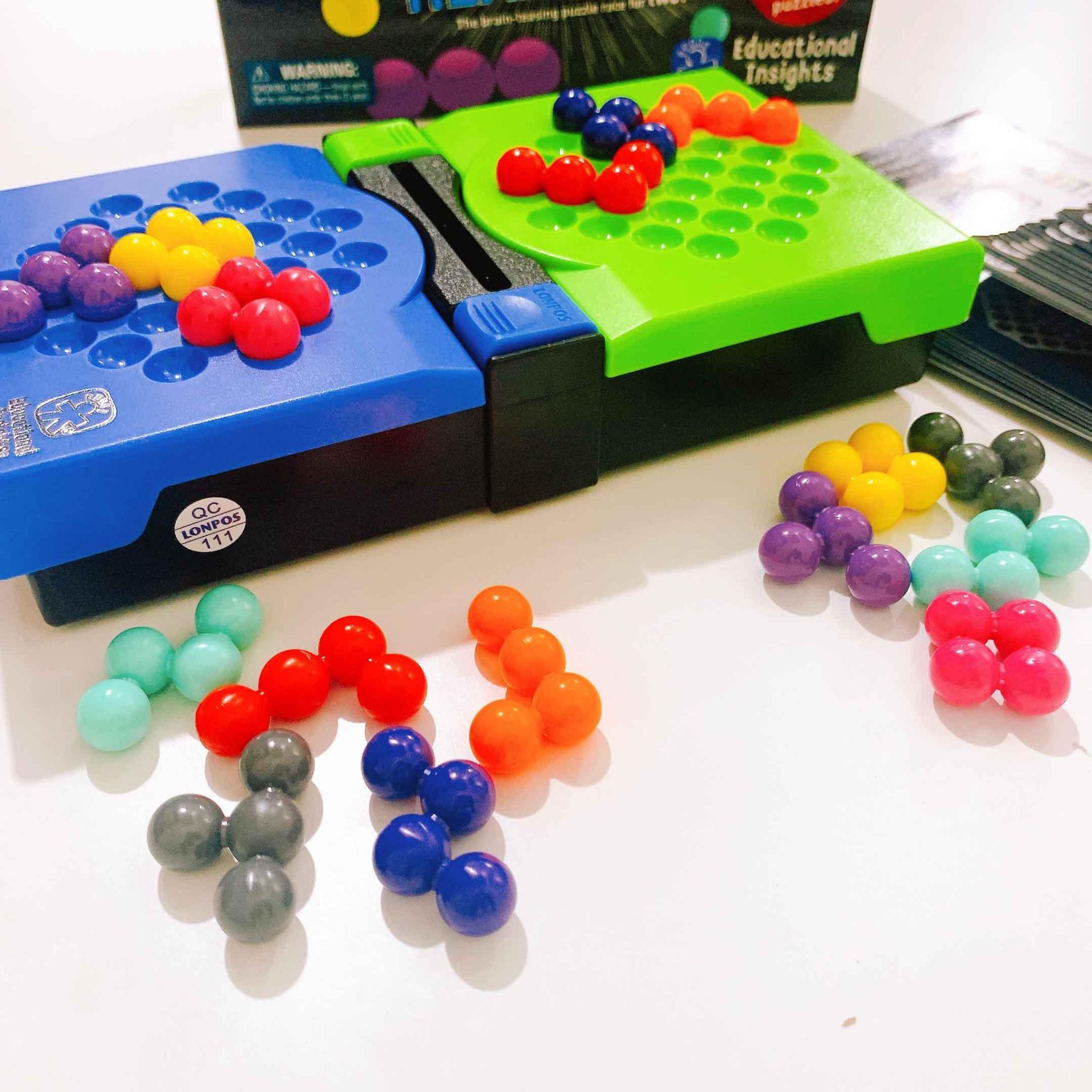 Khi chơi, đặt thẻ câu đố vào khung giữ ở giữa, sau đó hai người chơi cùng thiết kế câu đố và dùng những mảnh ghép còn lại để giải đố. Ai giải đố nhanh hơn người đó sẽ giành chiến thắng. Nhấn nút để bảng chơi của đối thủ bật lên và những mảnh ghép văng tung tóe nếu bạn giải đố xong trước. Trò chơi trí tuệ này vừa giúp trẻ luyện não bộ, vừa có khoảng thời gian cạnh tranh đầy hào hứng.
