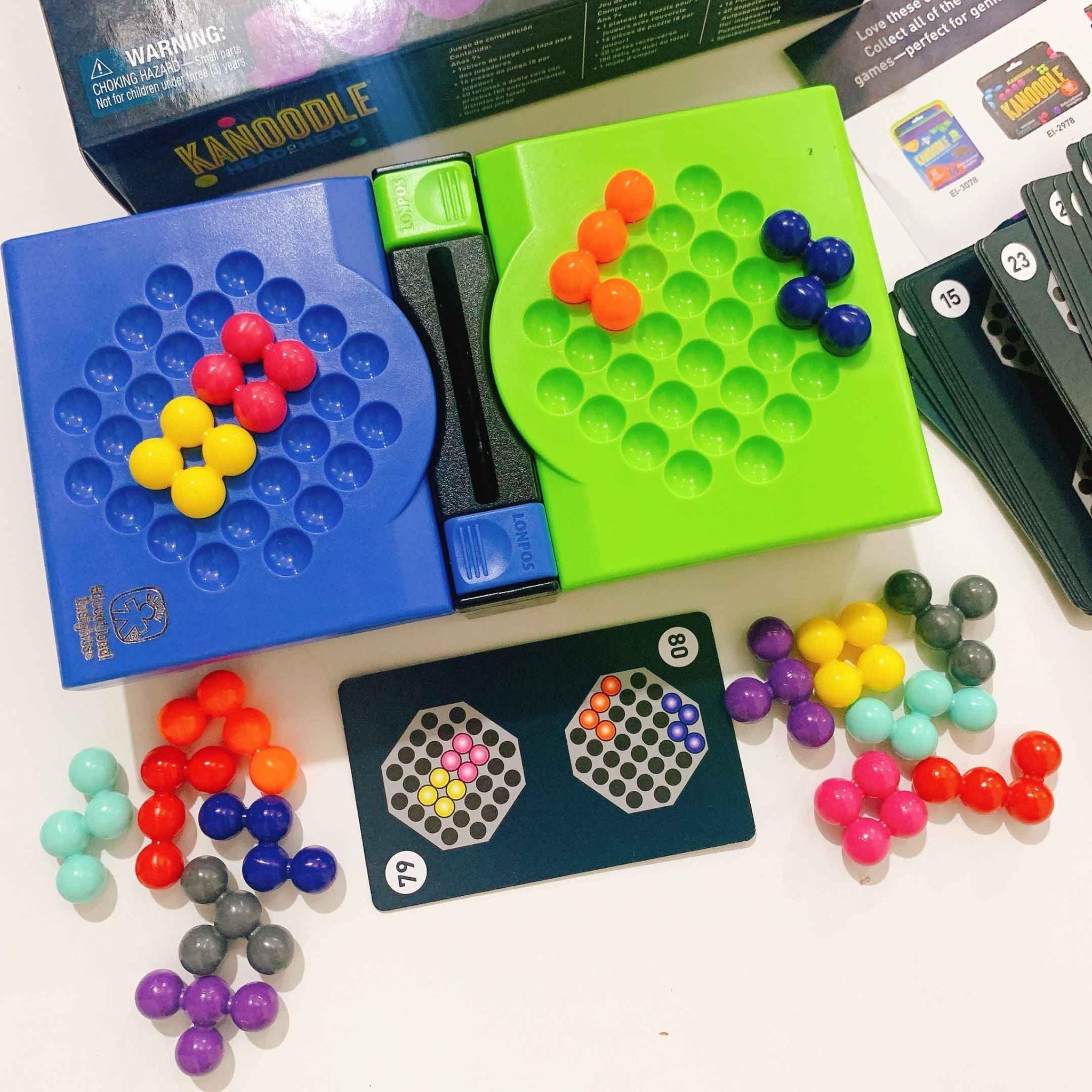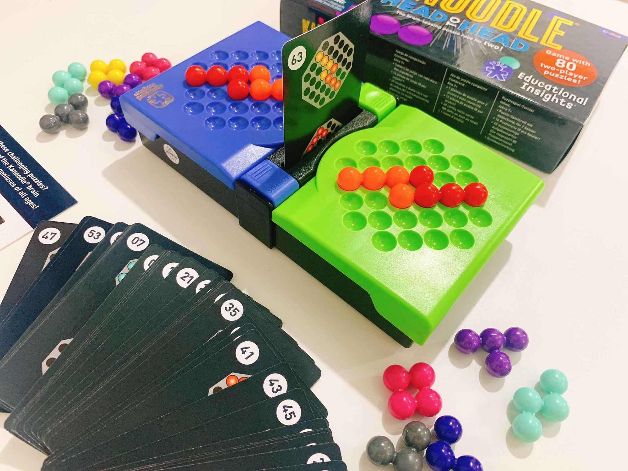 Kanoodle thuộc dòng trò chơi trí tuệ cho trẻ nổi tiếng và bán chạy của Educational Insights. Trò chơi phát triển thành nhiều loại sản phẩm khác nhau nhưng các sản phẩm trước đó chỉ dành cho 1 người chơi. Giờ đây Kanoodle Head to Head cho phép trẻ chơi cùng bạn bè, người thân với 80 câu đố xoắn não.