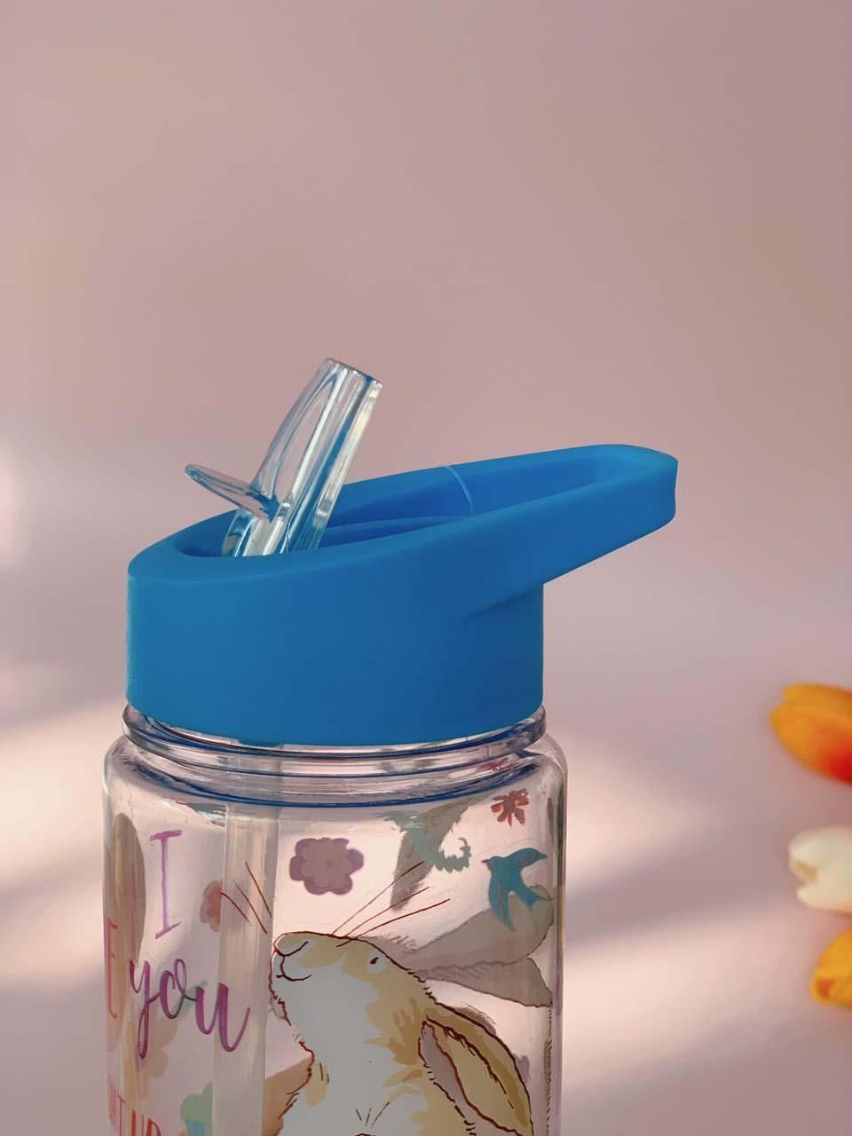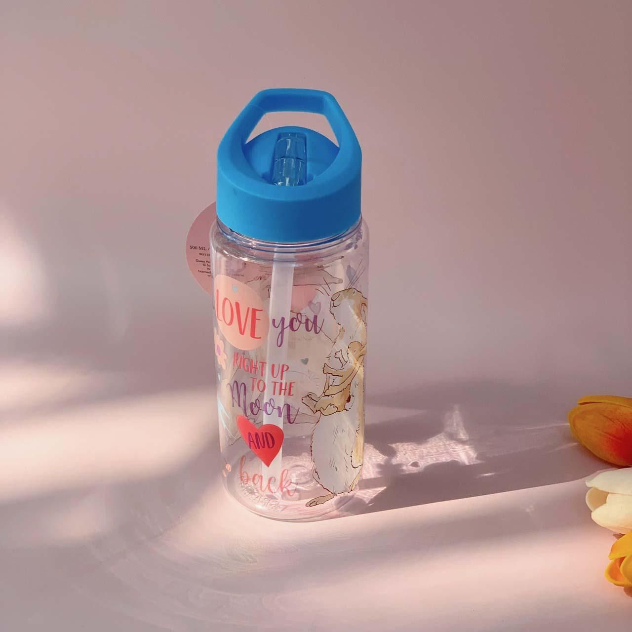 Children's Water Bottle - Guess How Much I Love You với thiết kế bằng nhựa cứng trong suốt, với những hình dáng minh hoạ rực rỡ và đáng yêu, đi kèm ống hút và nắp bật lên, hạn chế tối đa hiện tượng tràn hay chảy nước.