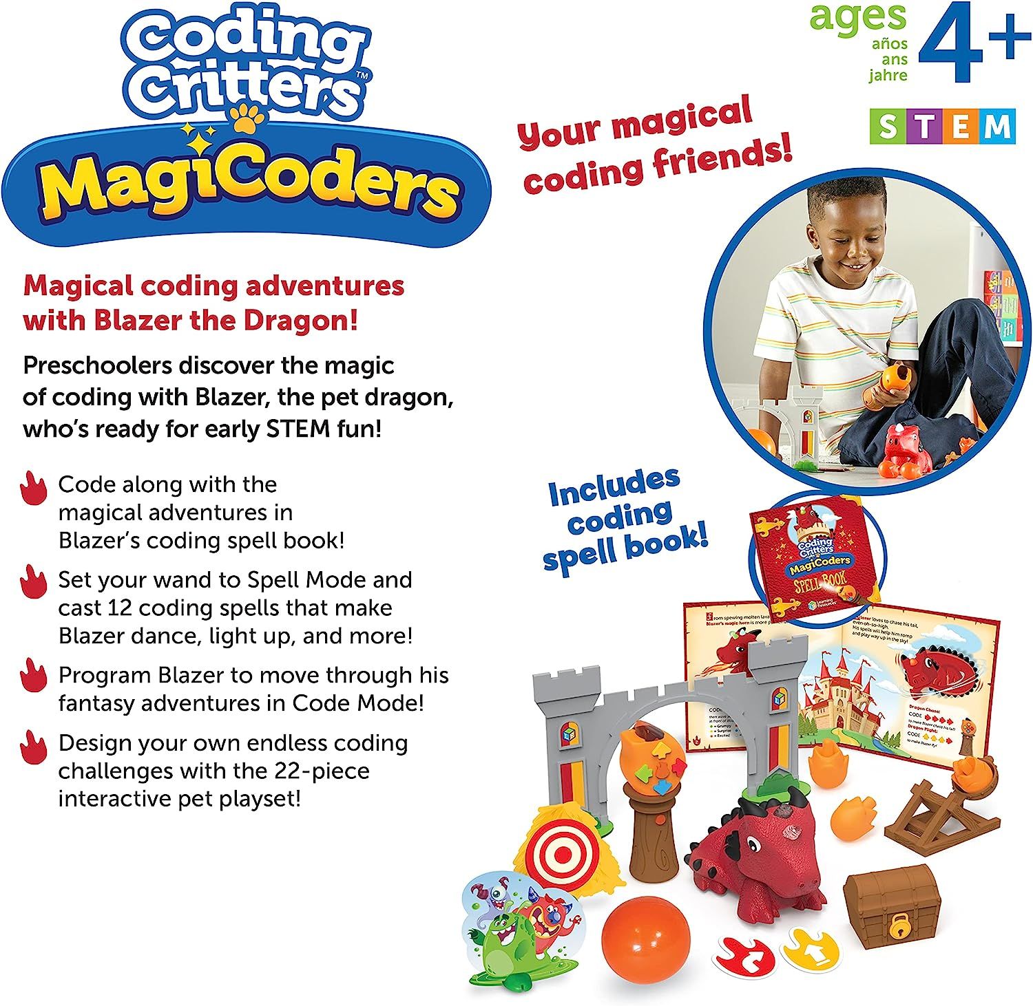 Trẻ sẽ thiết kế mã dựa trên câu chuyện phiêu lưu trong cuốn sách đi kèm, mỗi thử thách viết mã theo câu chuyện sẽ mở ra các hoạt động thú vị dành cho chú rồng Blazer như đuổi theo quả bóng, kích hoạt núi lửa phun trào, bắn đạn lửa trúng đích, phá đá chắn đường đi và vô số những nhiệm vụ đang chờ các bé khám phá. Các nút điều khiển lệnh được thiết kế như một cây đũa thần, mang lại cảm giác hứng thú và mới lạ cho trẻ.