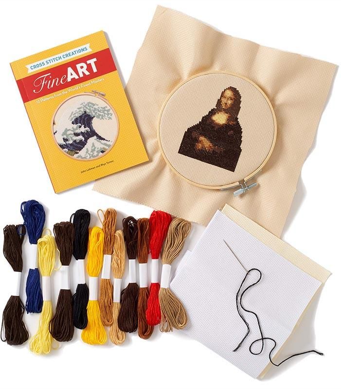 Cross Stitch Creations: Fine Art bao gồm một cuốn sách hướng dẫn 64 trang, chỉ dẫn bạn cách thêu 12 mẫu có sẵn kèm theo thông tin thực tế về tác phẩm nghệ thuật bạn sẽ tái tạo. Đặc biệt, sản phẩm đi kèm đầy đủ vật liệu để bạn thêu nên tác phẩm của Piet Mondrian và nàng Mona Lisa. Các vật liệu gồm chiếc vòng thêu, 2 bức tranh thêu chữ thập, 2 kim khâu, 12 búi chỉ nhiều màu.