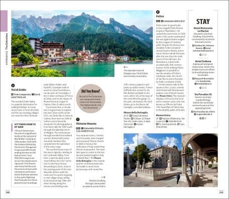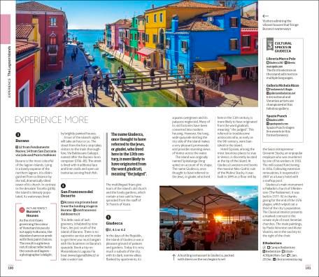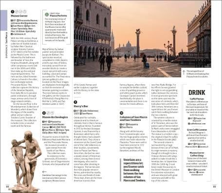 - Các chương được mã hóa màu cho mọi khu vực từ San Marco đến Castello, từ các đảo đầm phá đến dãy Dolomites.