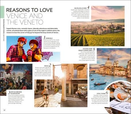- Hướng dẫn trải nghiệm hàng đầu với những minh hoạ rực rỡ, tuyệt đẹp cho bạn đọc thấy được những viên ngọc ẩn giấu và những điều không thể bỏ qua trong chuyến du ngoạn tại Venice, Veneto.