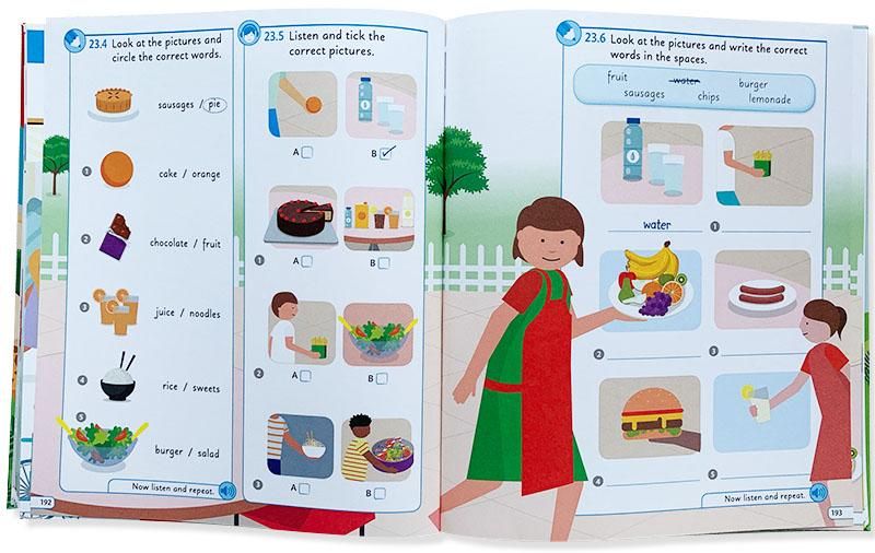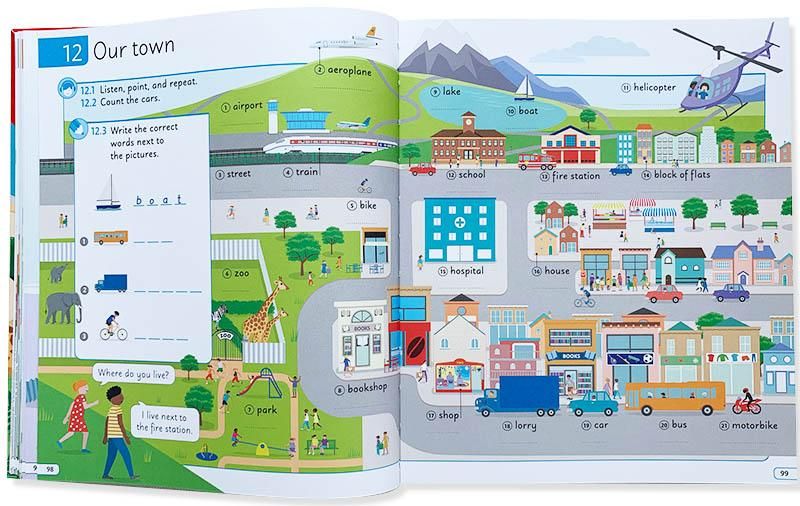 Tất cả từ vựng được dạy thông qua các bài tập, hoạt động, yêu cầu với hình ảnh minh họa màu sắc. Đặc biệt, người học có thể nghe phát âm bằng app đi kèm sách có audio với giọng đọc của người bản xứ. Bên cạnh từ vựng, các điểm ngữ pháp cũng được giải thích rõ ràng, luôn có ví dụ giúp độc giả dễ tiếp thu và ứng dụng trong cuộc sống. Sau cùng là các bài tập tương tác, đảm bảo việc học mang tính thực hành, học và áp dụng ngay lập tức.