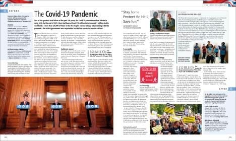 Pages including information about the Celtic Tiger, Brexit, Covid, as well as the lives of Queen Elizabeth II and Prince Philip