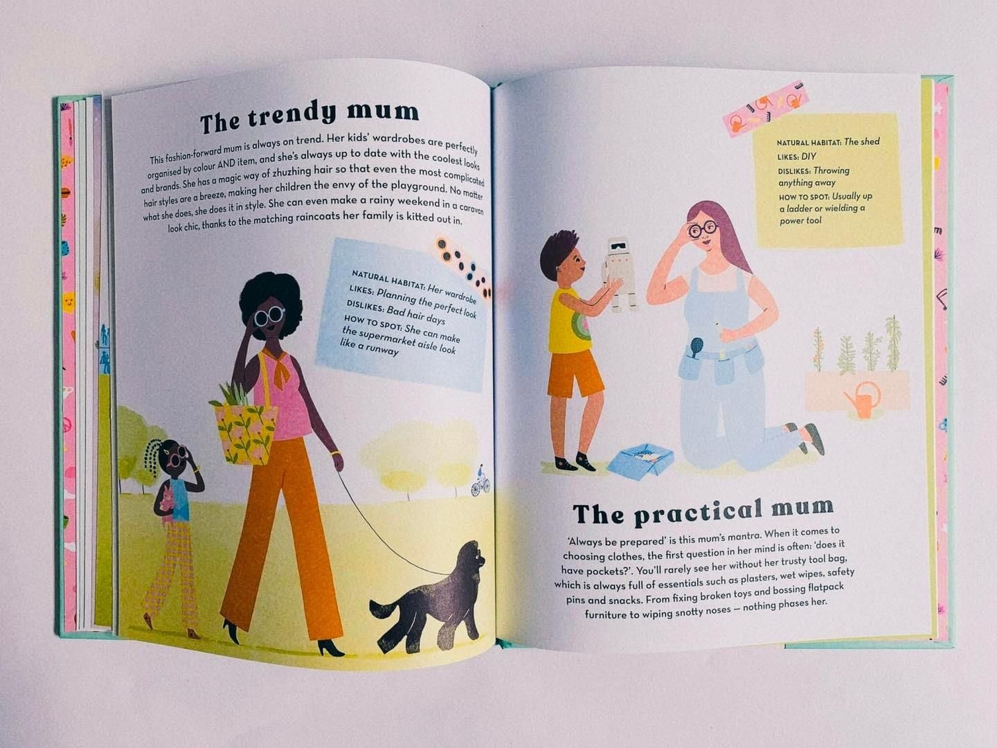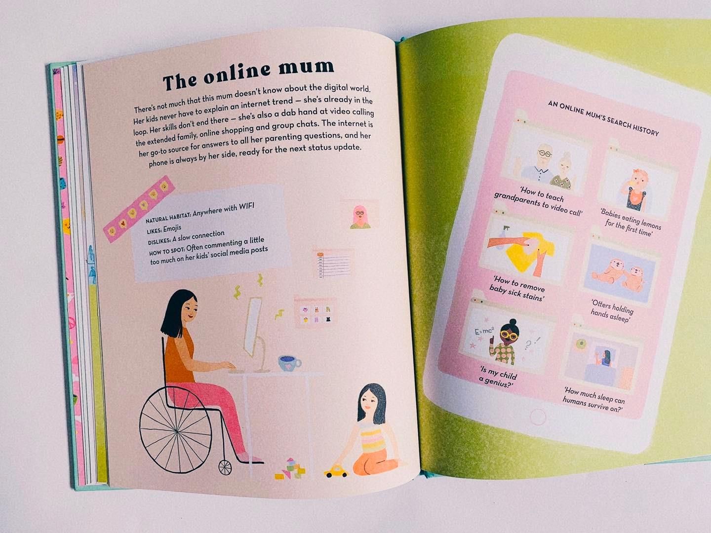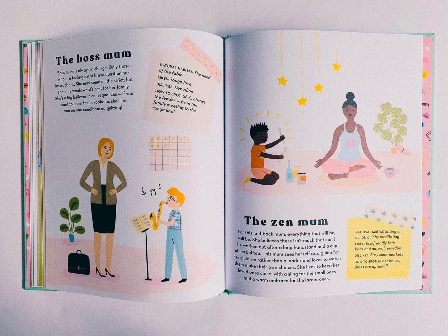 How to Spot a Mum có minh hoạ đẹp mắt, là hướng dẫn tìm kiếm lý tưởng để người đọc khám phá ra rằng tất cả những người mẹ đều là duy nhất và mỗi người đều có cá tính, suy nghĩ độc đáo của riêng mình bên cạnh vai trò làm mẹ. Khi đọc cuốn sách này, bạn đọc có thể nhận ra chính mình trong đó, hoặc trẻ em cũng sẽ thấy được bóng dáng thân thương của mẹ qua các con chữ.