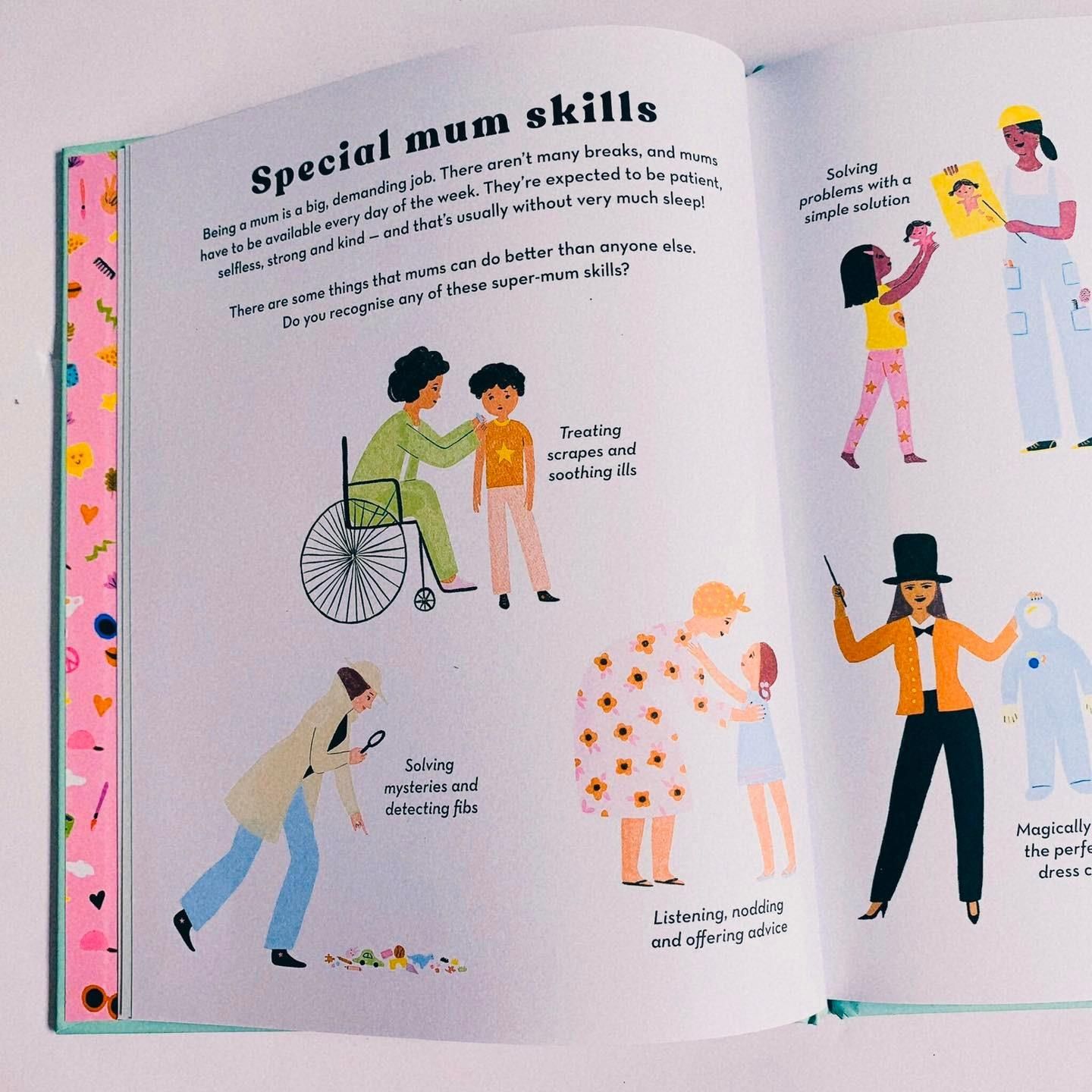 Với nội dung ấm áp và dí dỏm, trẻ em có thể tìm hiểu tất cả về mẹ qua cuốn sách này, từ họ là ai, đến một số kỹ năng đặc biệt mà họ có, giống như luôn tìm thấy đồ vật, giải quyết những bí ẩn và xung đột trong nhà.