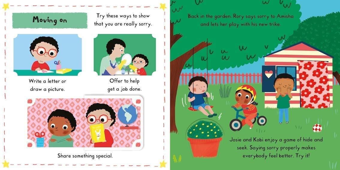I Can Say Sorry giúp trẻ nhỏ tìm hiểu khi nào chúng cần nói xin lỗi, cách bày tỏ sự xin lỗi một cách ý nghĩa và chân thành. Bé có thể nâng các tấm lật mở, trượt các tab và xoay bánh xe trong quá trình khám phá sự xin lỗi là gì, tình huống cần xin lỗi và những cách khác nhau để bày tỏ sự xin lỗi.