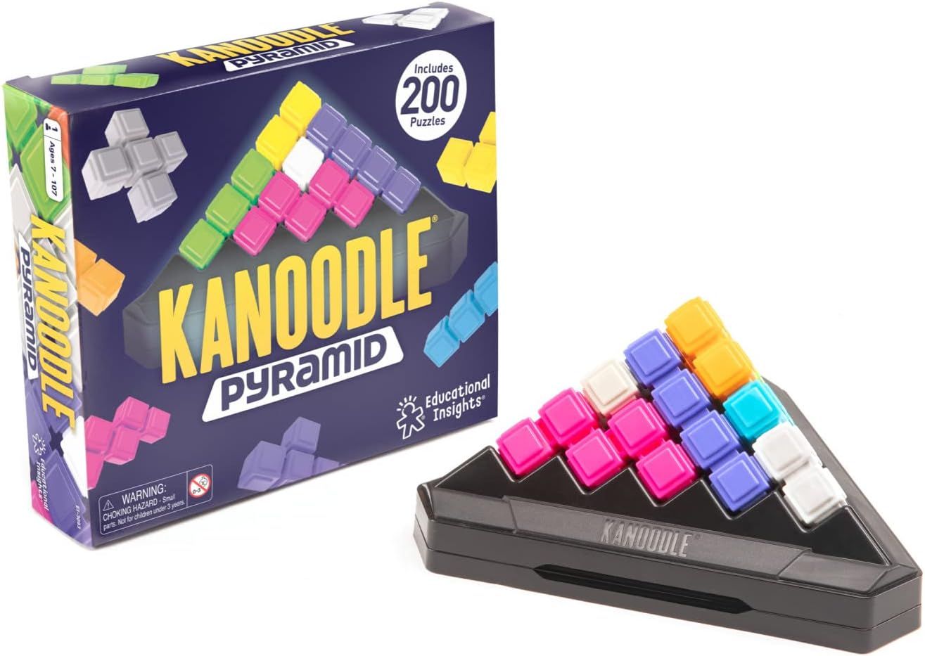 Kanoodle® là loạt trò chơi giải đố logic cầm tay bán chạy nhất của Educational Insights. Phiên bản Kanoodle® Pyramid là một trong những thử thách khó nhất dành cho những người chơi ở cấp độ Advanced. Bộ sản phẩm đem đến 200 câu đố thông minh 2D lẫn 3D, giúp kiểm tra logic, lý luận và kỹ năng nhận thức không gian, đồng thời xây dựng chiến lược, tư duy phản biện và kỹ năng giải quyết vấn đề ở trẻ em từ 8 tuổi trở lên.