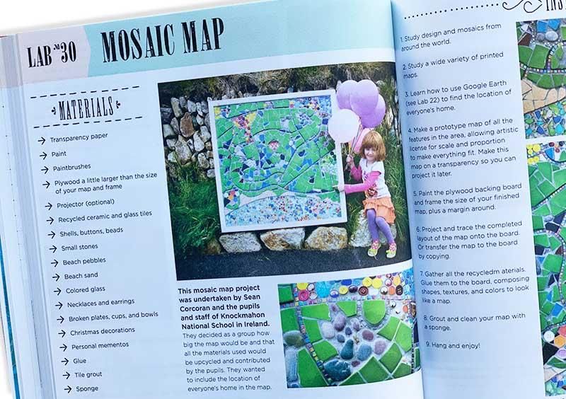Map Art Lab khuyến khích bạn đọc du hành qua thế giới thú vị của bản đồ học. Sách gồm 52 hoạt động vui nhộn và giàu trí tưởng tượng được đưa vào các bài tập nghệ thuật hàng tuần liên quan đến chủ đề bản đồ. Cuốn sách bắt đầu với các đường thẳng và chú giải bản đồ, cho đến các loại và phong cách bản đồ và cuối cùng là cá nhân hóa bản đồ cho phép bạn đọc lên kế hoạch cho hành trình đến những thế giới mới.
