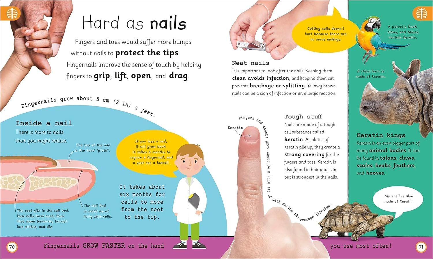 - Các chương tập trung vào hành trình giải phẫu xung quanh cơ thể, khung xương, các bộ phận và hệ thống cơ thể, các giác quan, các vấn đề sức khỏe thường gặp và lối sống lành mạnh.