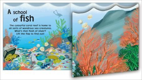 Hãy khám phá bên dưới các tấm lật mở về đàn kiến đang chăm chỉ làm việc, đàn cá lấp lánh với hiệu ứng sáng bóng bơi qua rặng san hô màu sắc. Và bé cũng sẽ biết tại sao một số loài động vật lại thích sống theo nhóm và làm việc cùng nhau.