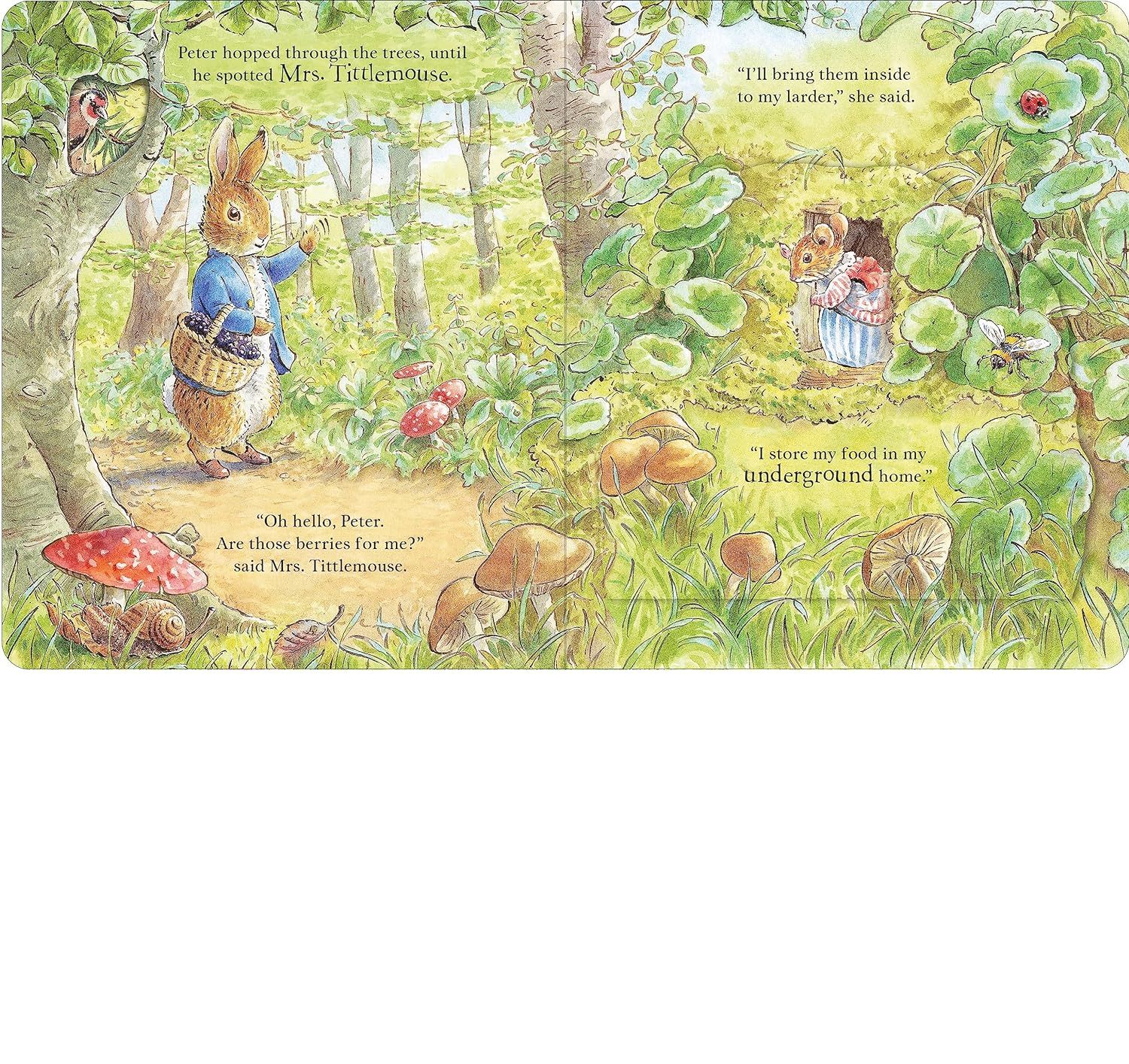 Minh hoạ và các mảng màu trữ tình, thơ mộng của Beatrix Potter mở ra thế giới cổ tích quyến rũ. Peter Rabbit: Forest Homes A Peep-Inside Tale hớp hồn độc giả nhí ngay từ trang bìa với hình cắt xinh đẹp, là lời giới thiệu hoàn hảo về Peter Rabbit và những người bạn.