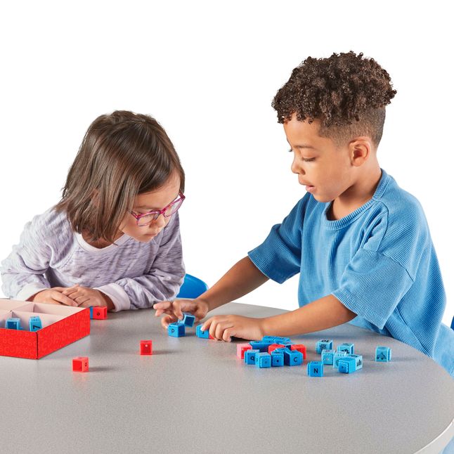 Bao gồm 82 khối lập phương, tất cả được đựng trong hộp chắc chắn, được chia thành hai ngăn riêng biệt cho nguyên âm và phụ âm.