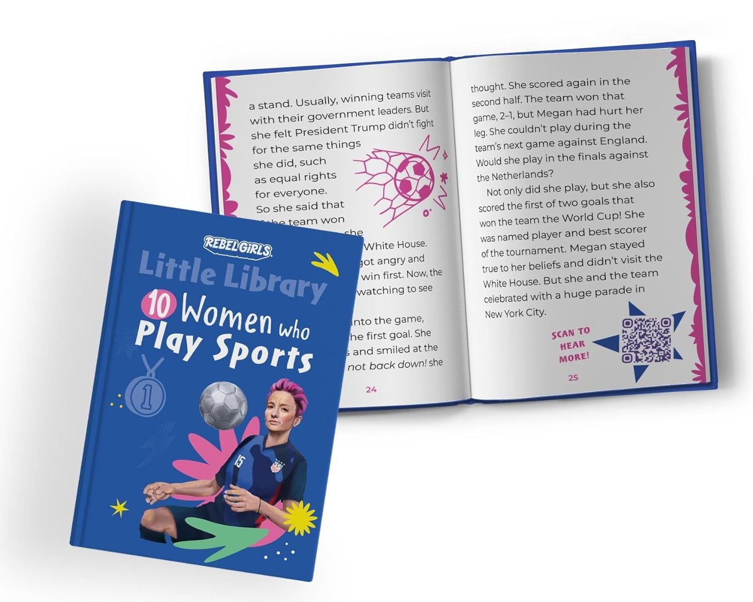 Mỗi câu chuyện đời thực trong những cuốn sách này đều được ghép nối với những bức chân dung được tạo ra bởi các nghệ sĩ nữ từ khắp nơi trên thế giới. Đồng thời bạn có thể scan mã QR đi kèm để khám phá thêm những câu chuyện bổ sung dưới phiên bản âm thanh về những nhân vật phi thường này, trên các nền tảng khác nhau Rebel Girls.
