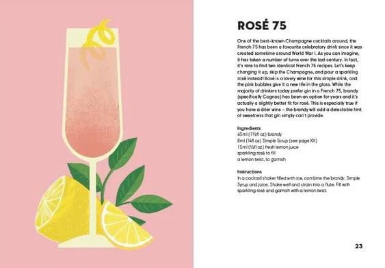 Rượu vang Rosé là nền tảng lý tưởng cho các loại cocktail. Nó kết hợp hoàn hảo với những nốt đắng của Campari để tạo nên một hương vị thơm ngon của Negroni, và không kém phần thoải mái với crème de cassis ngọt ngào cho Kir Blush. Cuốn sách có minh họa đẹp mắt này cho thấy tính linh hoạt của loại rượu phổ biến này trong việc tạo ra nhiều loại cocktail tinh tế và dễ uống.