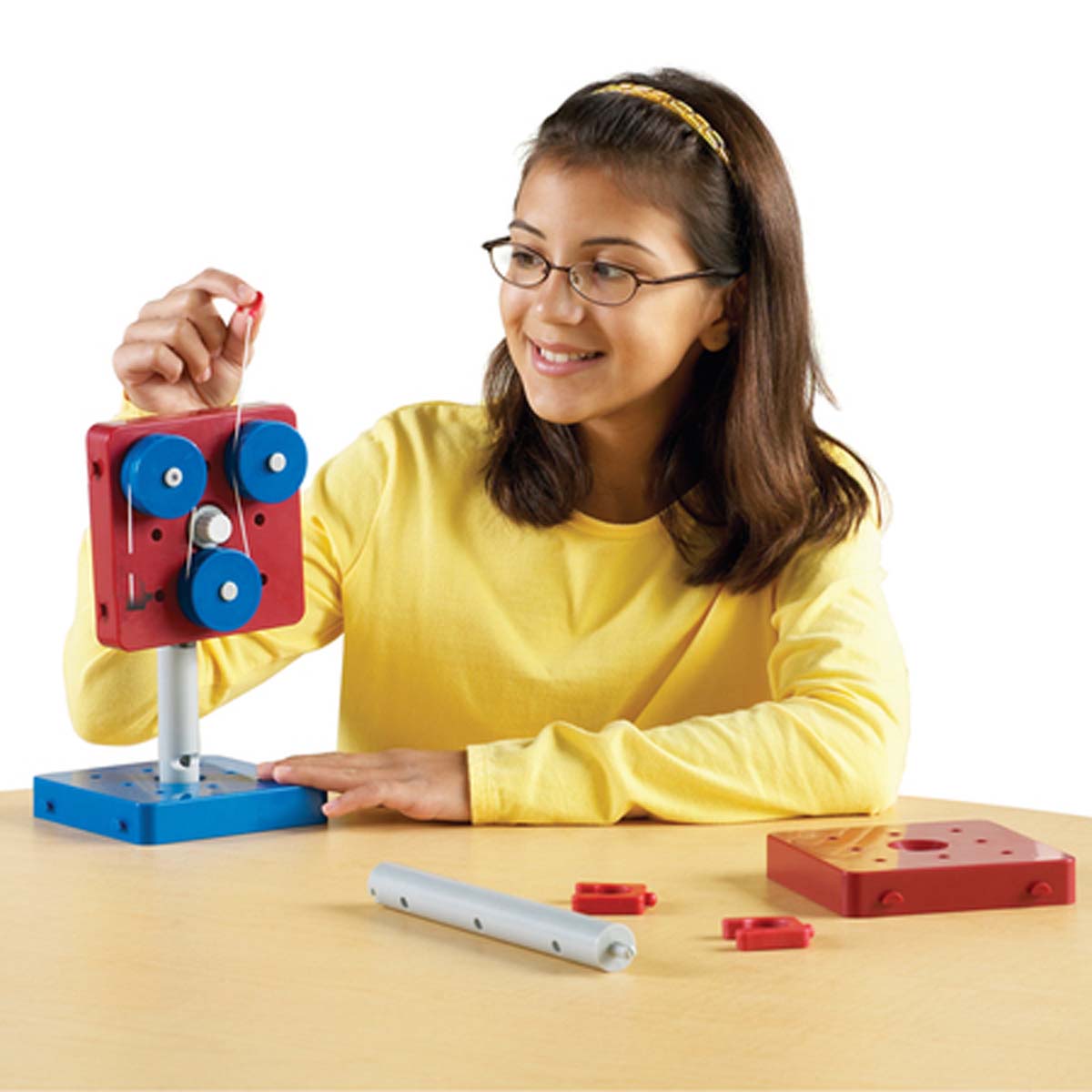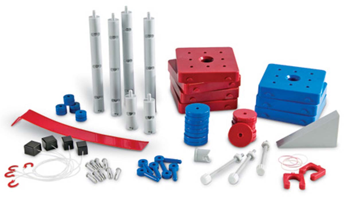 Chứa đủ các mảnh ghép để trẻ tha hồ xây dựng nhiều loại máy cùng một lúc (đòn bẩy, ròng rọc, mặt phẳng nghiêng, bánh xe và trục, và nêm).