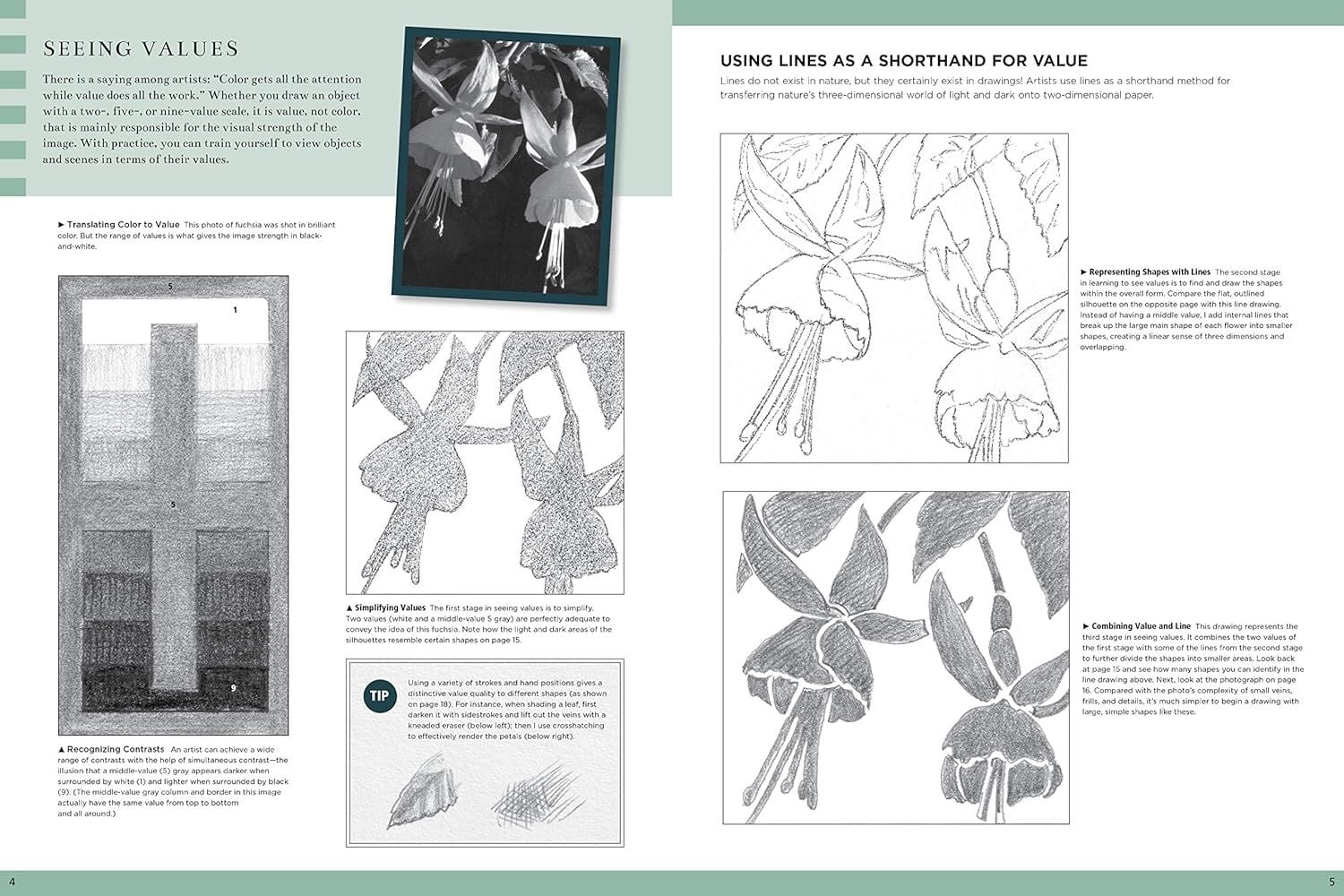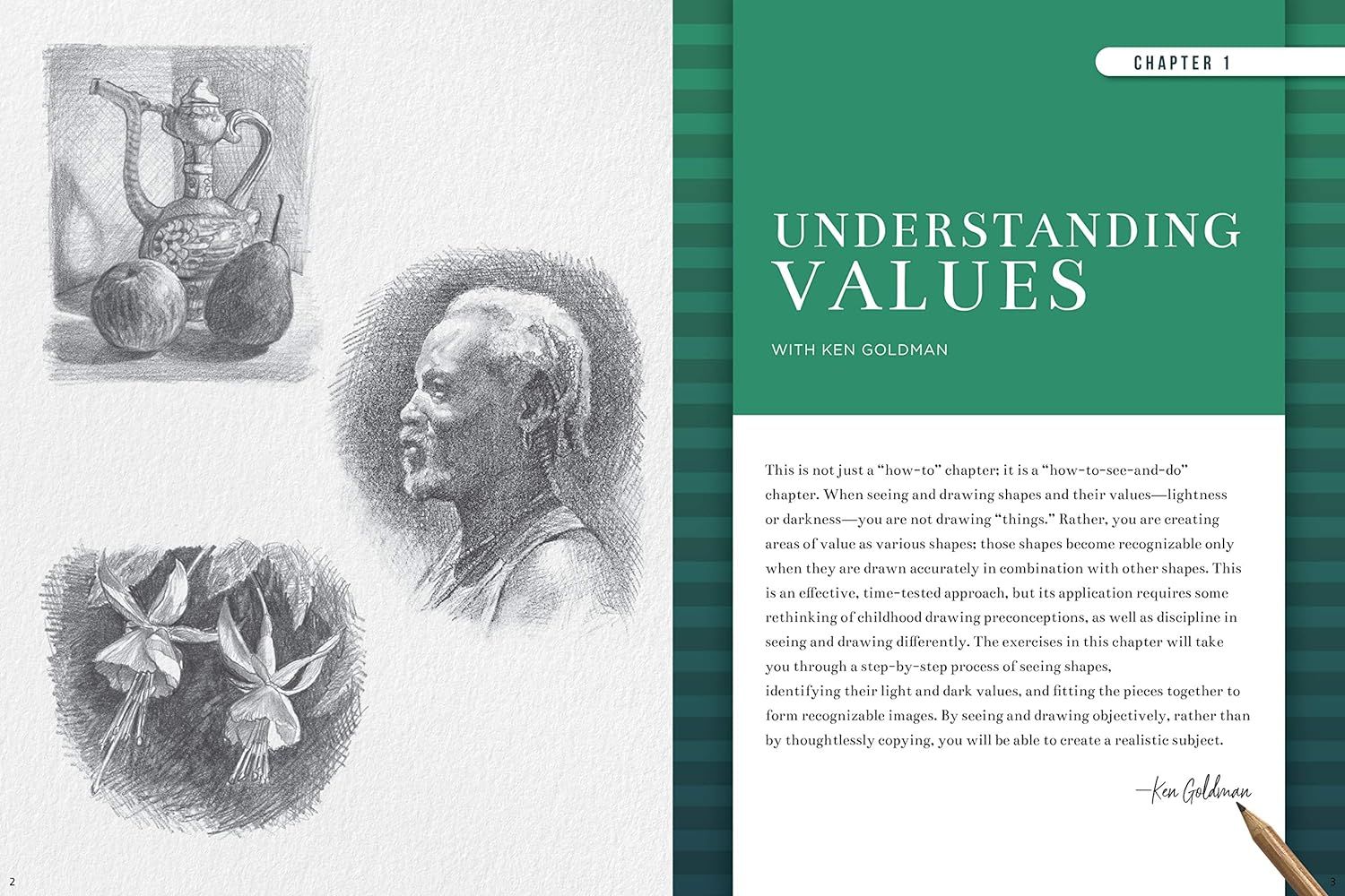 Bạn đọc sẽ được tìm hiểu về những kiến thức căn bản như hình dạng, nguồn sáng, cách tạo chiều sâu cho đến cách tạo nên bố cục động, nơi người nghệ sĩ nhuần nhuyễn các khái niệm đối xứng, bất đối xứng, tiêu điểm, phong cảnh và không gian trống. Khám phá những kỹ thuật để khắc hoạ trọn vẹn những kết cấu khác nhau trong tĩnh vật truyền thống, động vật, con người, hoa hay phong cảnh. Và đương nhiên không thể thiếu các bài tập vẽ cụ thể từ đơn giản đến phức tạp như: gấu bông, phong cảnh, ngựa, tĩnh vật hoa, chân dung cô gái, trái cây và rượu vang,..