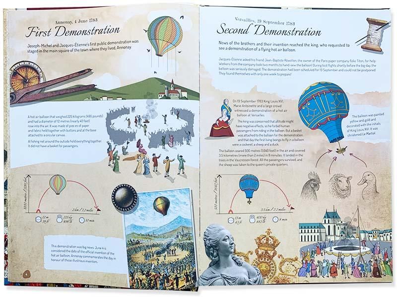 Vào ngày 5 tháng 6 năm 1783, chiếc máy bay chở khách đầu tiên trong lịch sử đã bay lên không trung và đó là một chiếc khinh khí cầu khổng lồ do anh em nhà Montgolfier phát minh. Cuốn sách kể lại câu chuyện của họ từ khi chiếc khinh khí cầu còn là ý tưởng, đến quá trình thực hiện, những cuộc trưng bày, thử nghiệm để cho ra kết quả hoàn chỉnh khiến mọi người ngạc nhiên cảm thán. Đây là một hành trình đầy cảm hứng, khơi dậy sự say mê và khích lệ ước mơ khoa học của trẻ.