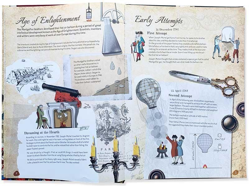 Sách kết hợp lắp ráp mô hình 3D khinh khí cầu kể về anh em nhà Montgolfier.