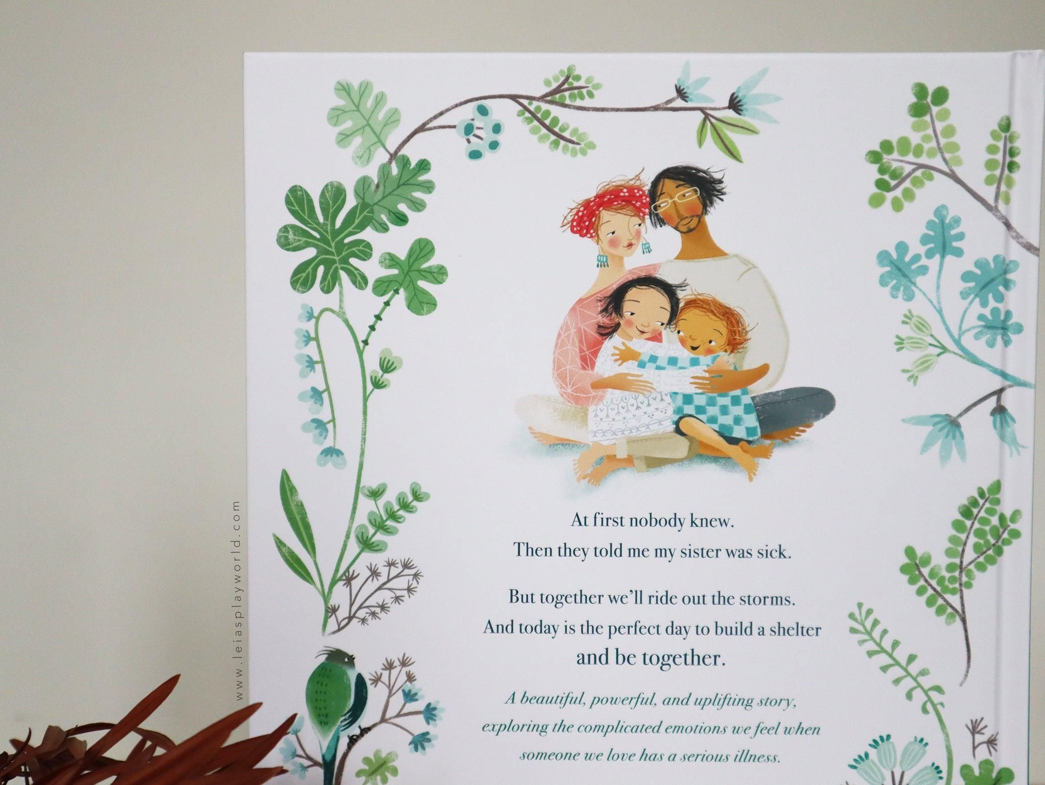 Câu chuyện cảm động này được kể dưới góc nhìn của một cô bé khi đón nhận tin người thân của mình mắc bệnh và đang trở nên yếu ớt từng ngày. Nhưng gia đình họ đã cùng nhau đi chơi, nhặt cành cây, vui đùa với thiên nhiên, xây dựng một mái ấm xanh tươi và dành thời gian quý báu ở bên nhau. Sách có minh hoạ nhẹ nhàng tuyệt đẹp đến từ hoạ sĩ tài năng Asa Gilland, đem đến những tông màu tươi sáng và tích cực.