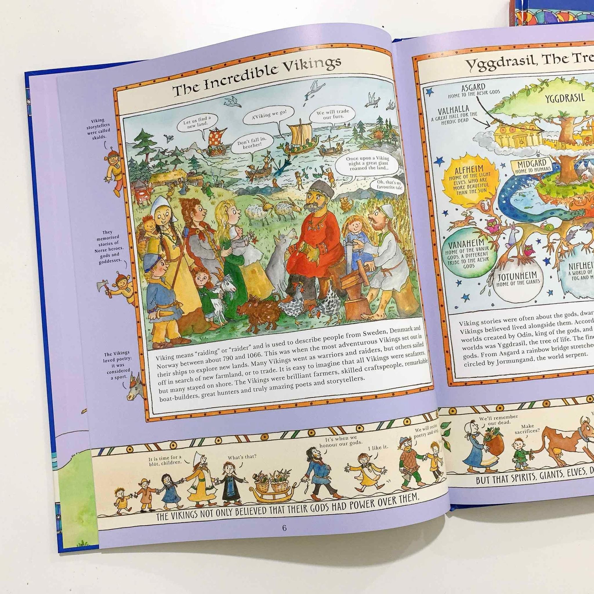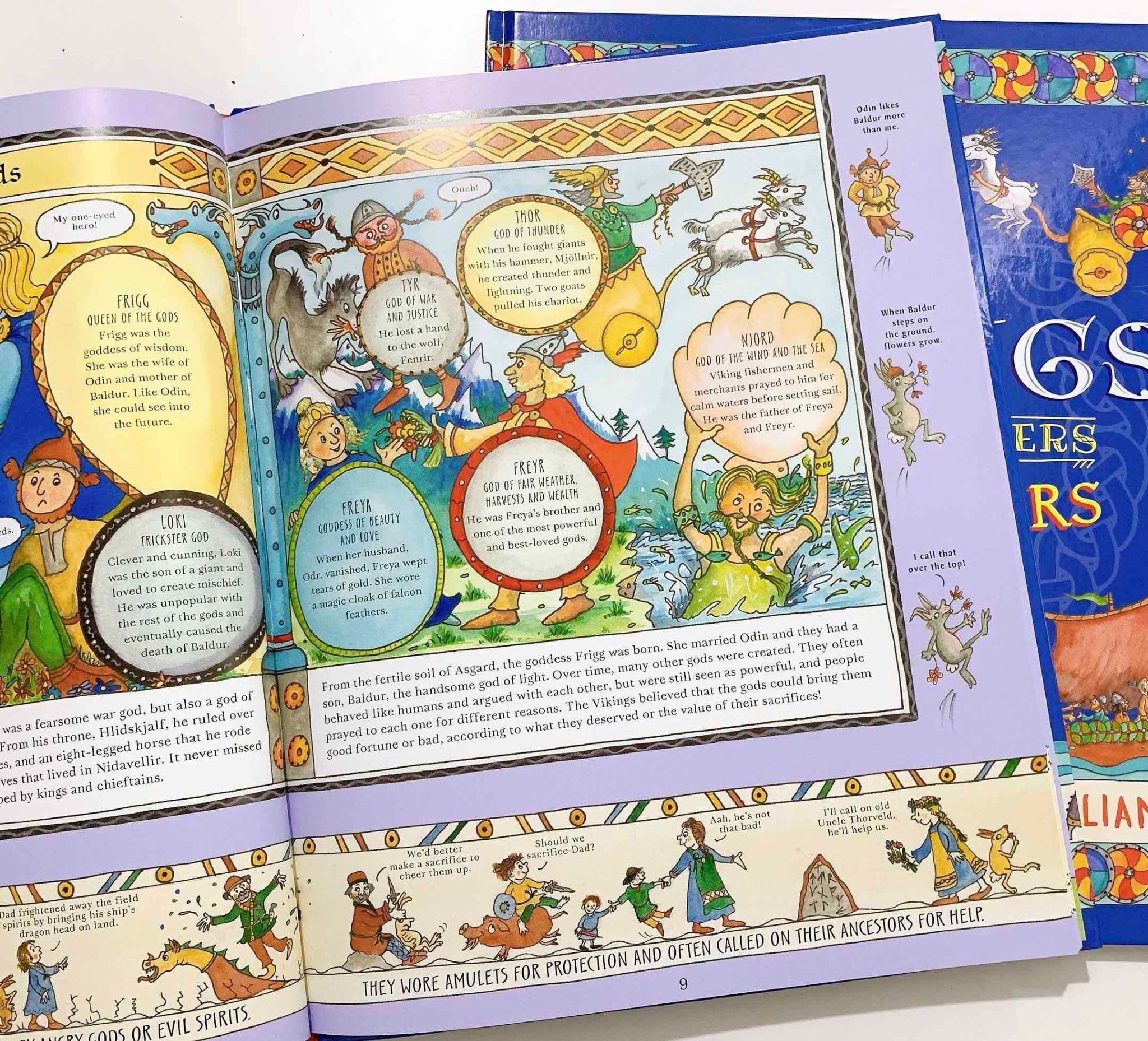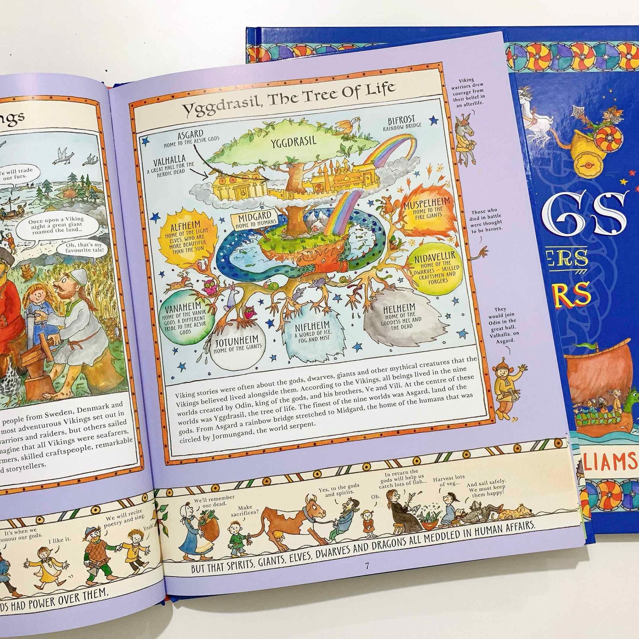 Trong đầu sách này, trẻ sẽ gặp gỡ những chiến binh huyền thoại, những nhà thám hiểm táo bạo và những vị vua thông minh với minh hoạ bắt mắt về người Viking. Hãy tham gia cùng Marcia Williams và khám phá những câu chuyện đáng kinh ngạc về các cuộc đột kích của người Viking, hành trình khám phá vĩ đại của họ và các vương quốc bị chinh phục dưới sức mạnh của người Viking.Trẻ sẽ được khám phá cây sự sống Yggdrasil thần kỳ của họ, quan sát bản đồ của thế giới Viking với minh hoạ chi tiết hay gặp gỡ những vị thần Viking huyền thoại như Odin hay Thor.