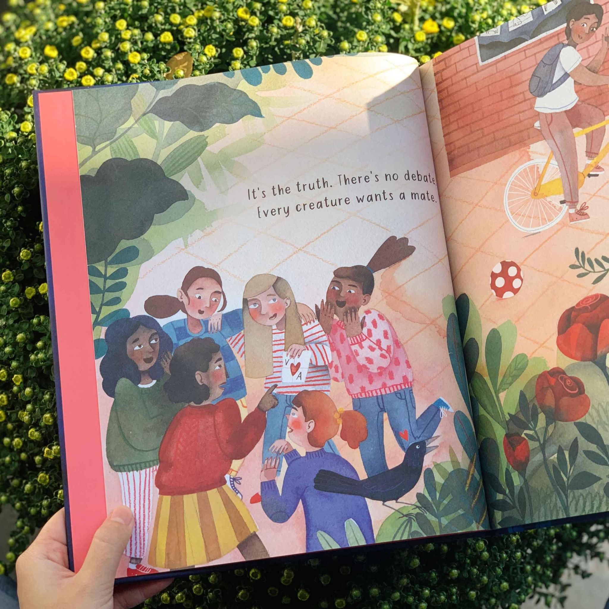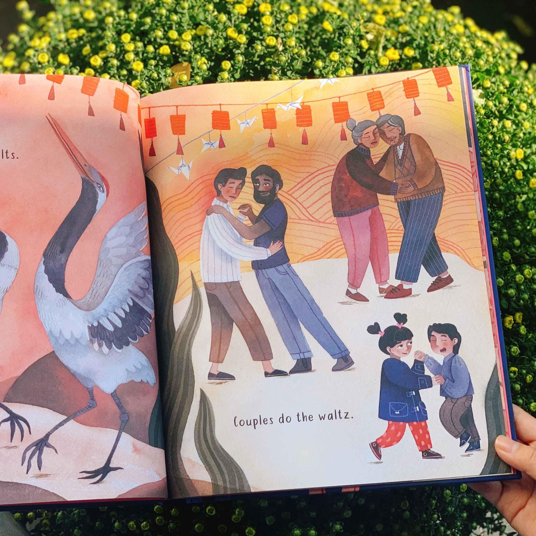 Mỗi tương tác của động vật đều được so sánh với hành vi tương tự của con người. Giống như một cặp đôi thiên nga khi âu yếm cũng sẽ hôn nhau, được liên tưởng với hình ảnh của một cặp đôi hạnh phúc đang tổ chức hôn lễ và trao nhau nụ hôn ngọt lịm. Hình ảnh minh hoạ vô cùng đẹp mắt, do nghệ sĩ tài năng Alette Strattoff vẽ nên sẽ khiến không chỉ trẻ em mà người lớn cũng bị mê hoặc.