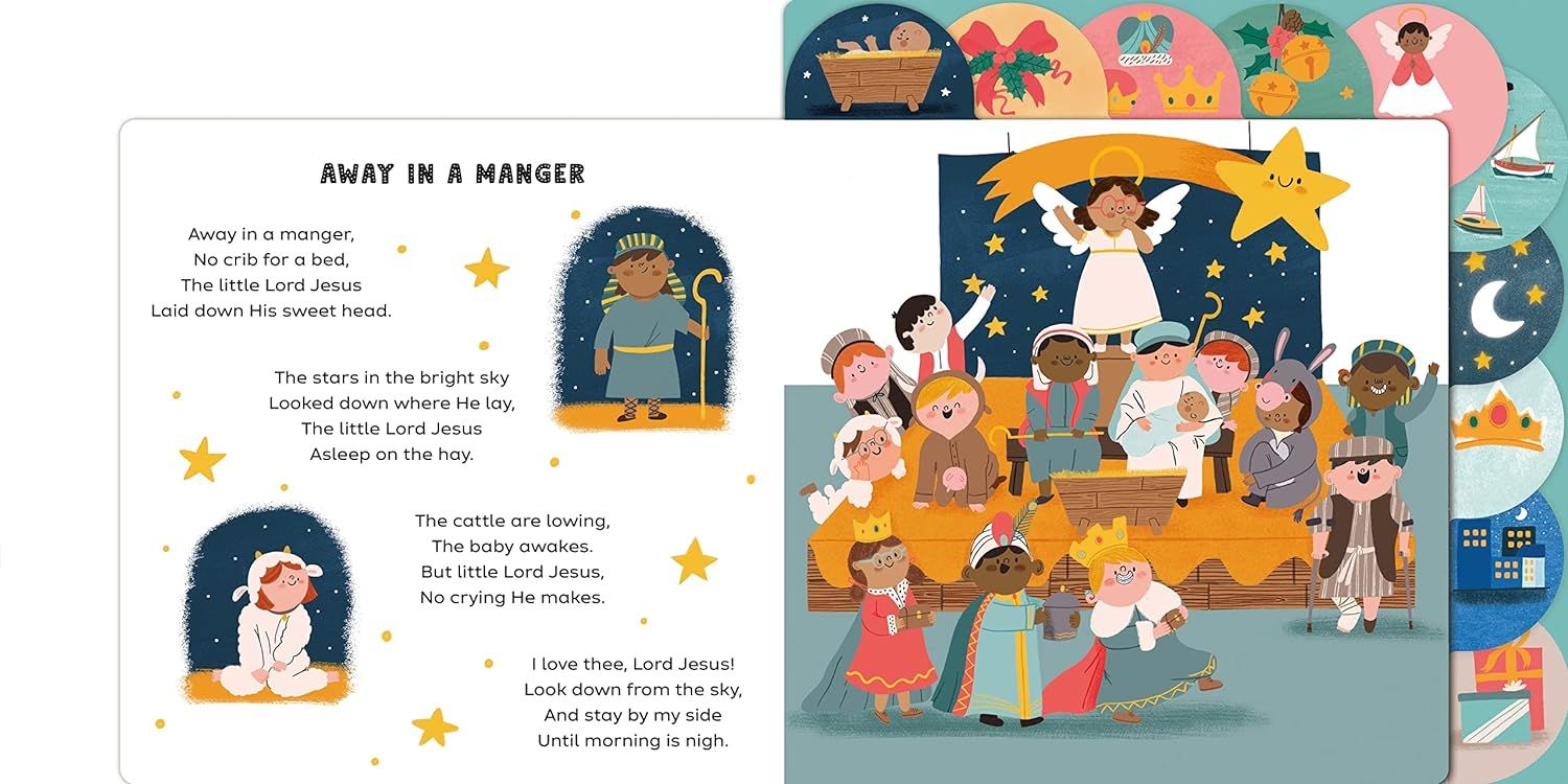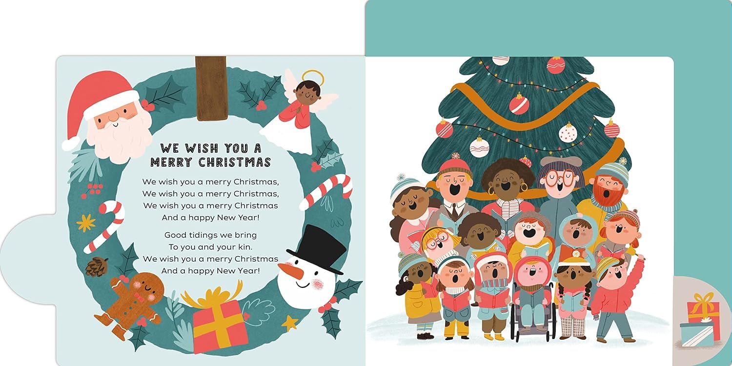 We Wish You A Merry Christmas thể hiện 10 bài hát Giáng Sinh nổi tiếng với minh họa đầy màu sắc và lời để bé nghêu ngao hát theo. Tựa sách bìa cứng, kích thước lớn với thiết kế các thẻ đánh dấu nổi bật, giúp trẻ dễ dàng tìm kiếm bài hát yêu thích của mình.